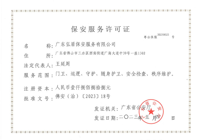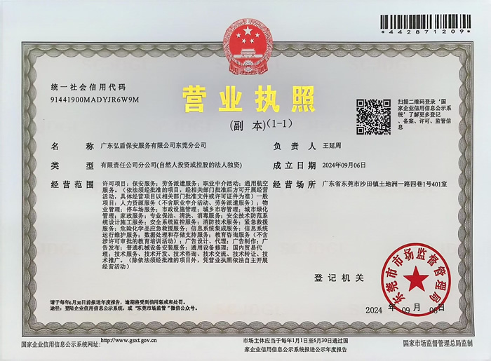 • 弘盾保安總公司營(yíng)業(yè)執(zhí)照