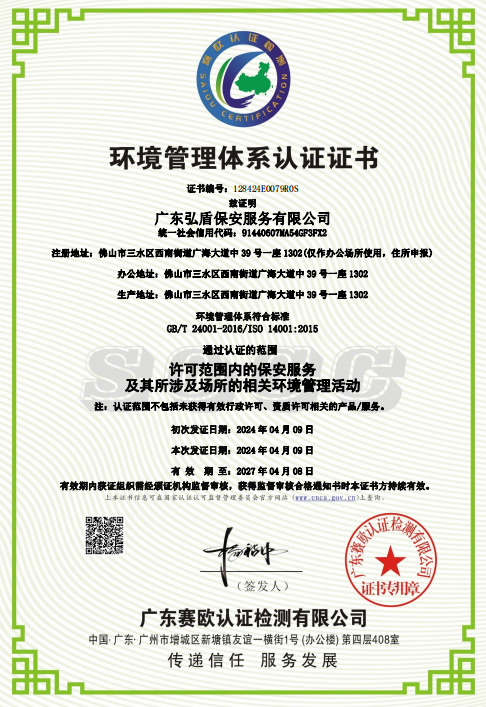 • 環(huán)境管理體系認(rèn)證證書(shū)